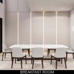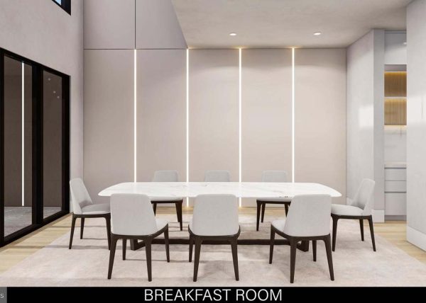 Sophisticated Finishes: The family room serves as a central hub with its book-matched feature wall and modern linear fireplace.